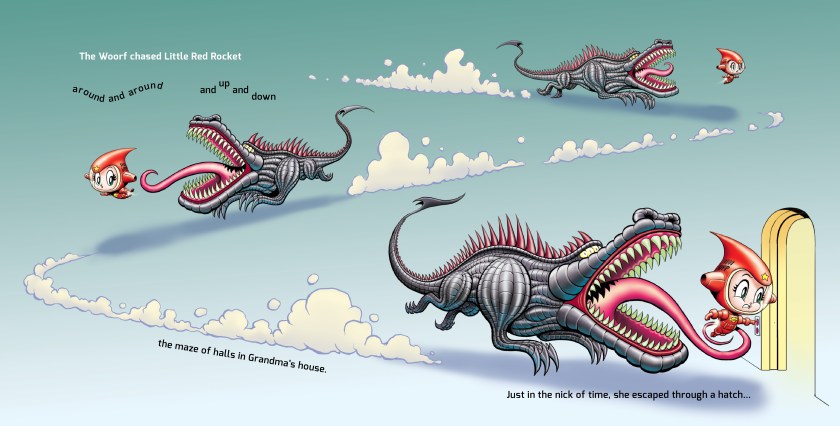 Can Little Red Rocket save grandma, and herself, from the Woorf? Can she teach the Woorf the value of sharing?